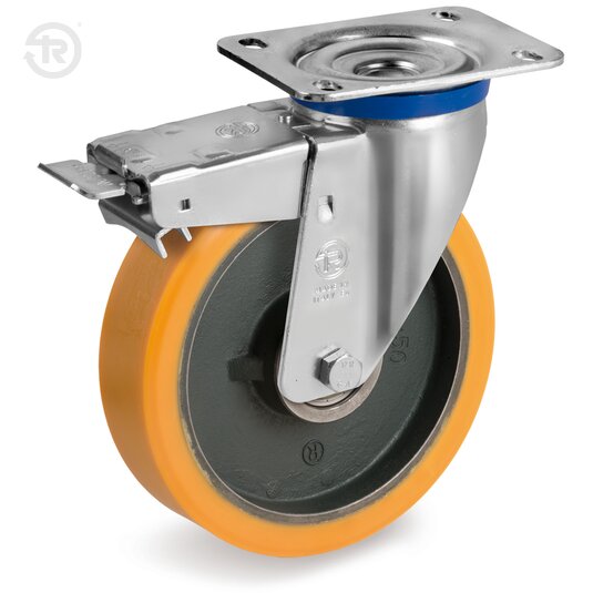 Laufbelag aus gegossenem "TR"-Polyurethan; Härte 92+/-3 Shore A. Maschinengusskern.