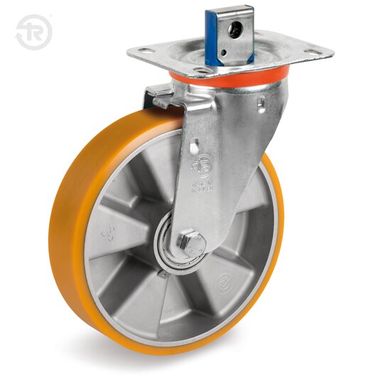 TR polyurethane tread; hardness 92+/-3 Shore A. Aluminium centre.