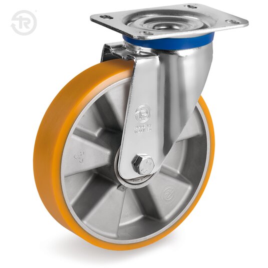 TR polyurethane tread; hardness 92+/-3 Shore A. Aluminium centre.