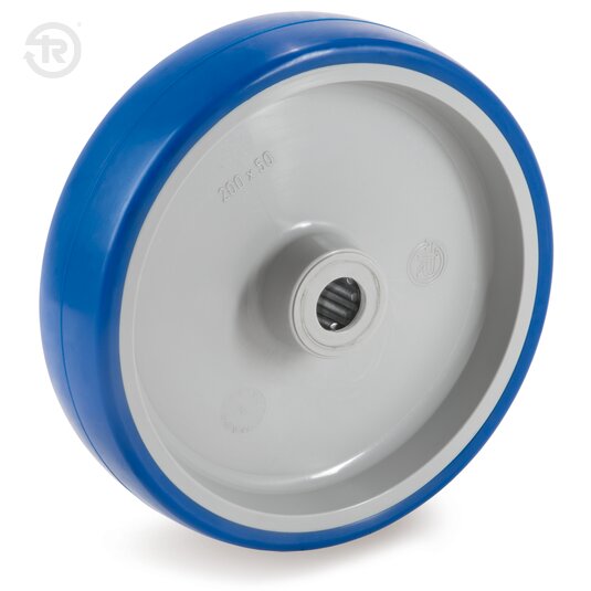 Bandaje en poliuretano inyectado; dureza 85 Shore A. Núcleo en material termoplástico.