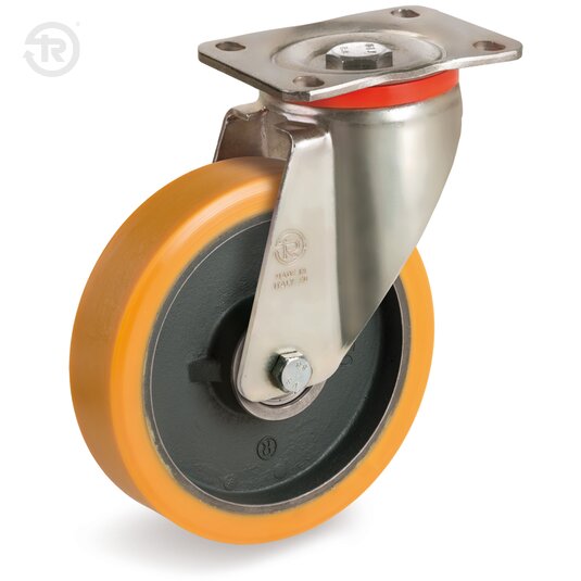 Bandaje en poliuretano colado "TR"; dureza 92+/-3 Shore A. Núcleo en hierro fundido para mecánica.