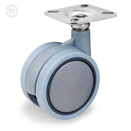 Roues jumeléesen polyamide 6 avec monture pivotante à platine.