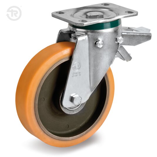 Bandage en polyuréthane coulé «TR» ; dureté 92+/-3 Shore A. Corps en fonte mécanique.