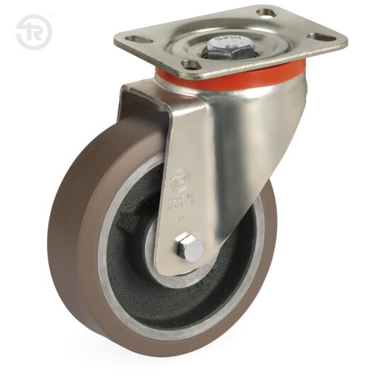 Rivestimento in poliuretano colato TR-PowerHigh; durezza 92+/-3 Shore A. Nucleo in ghisa meccanica.