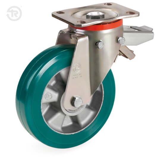 Ruote in poliuretano TR-ROLL, durezza 75 Shore A; nucleo in alluminio pressofuso.