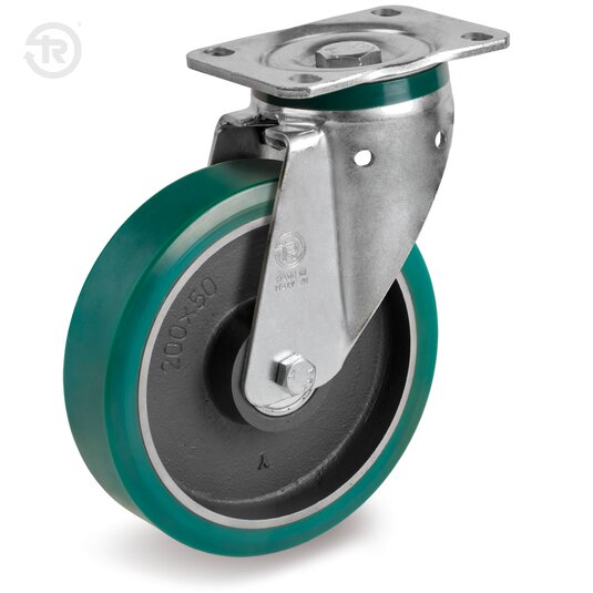 Ruote in poliuretano TR-ROLL, durezza 75 Shore A; nucleo in ghisa meccanica.