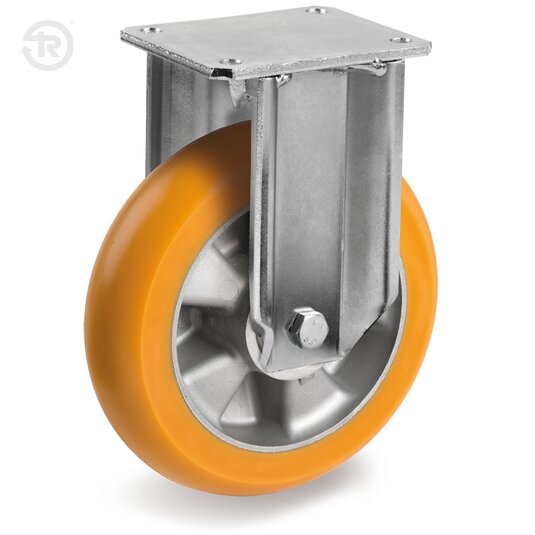 Ruote in poliuretano TR con profilo bombato ergonomico, durezza 92+/-3 Shore A; nucleo in alluminio pressofuso.