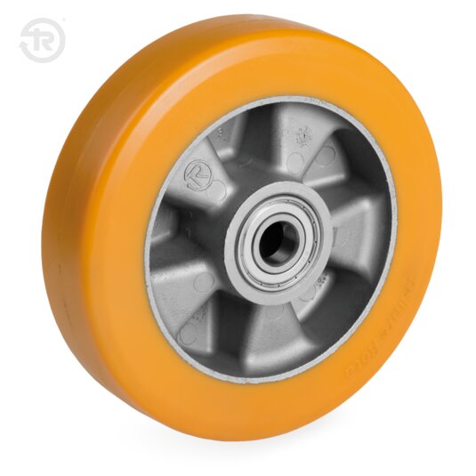 Rivestimento in poliuretano colato "TR", alto spessore; durezza 92+/-3 Shore A. Nucleo in alluminio pressofuso.