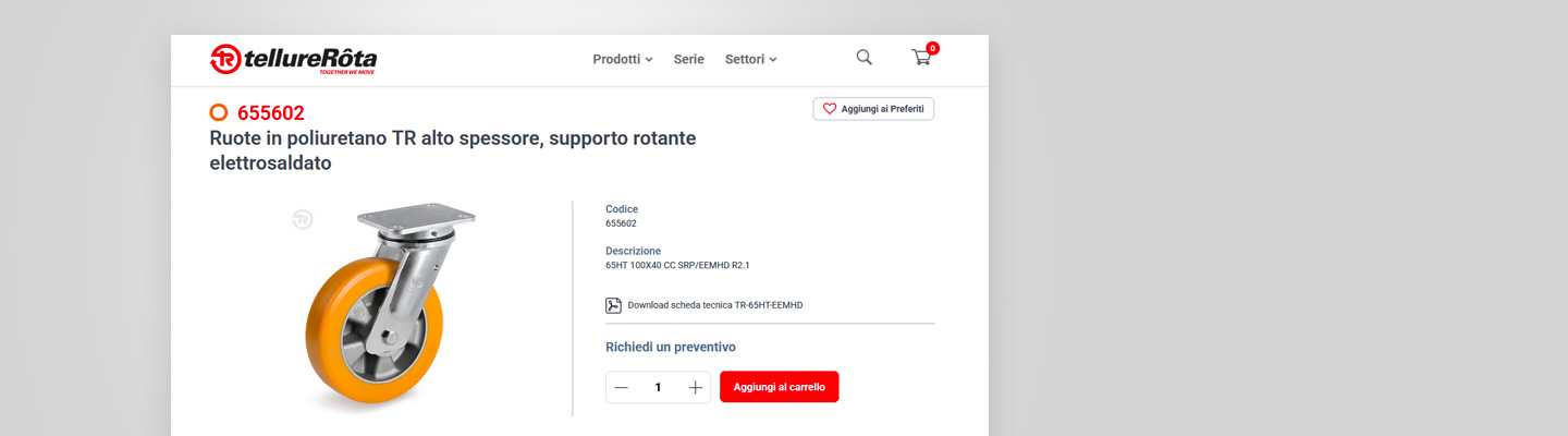 Компания Tellure Rota специализируется на выпуске колес и опор для применения в промышленности, социальной сфере и мебельном производстве. Насчитывая в своем ассортименте более 5000 наименований и располагая обширной сетью дистрибьюторов, компания представлена в более чем 70 странах мира как надежный партнер для решения любых задач по перемещению грузов.