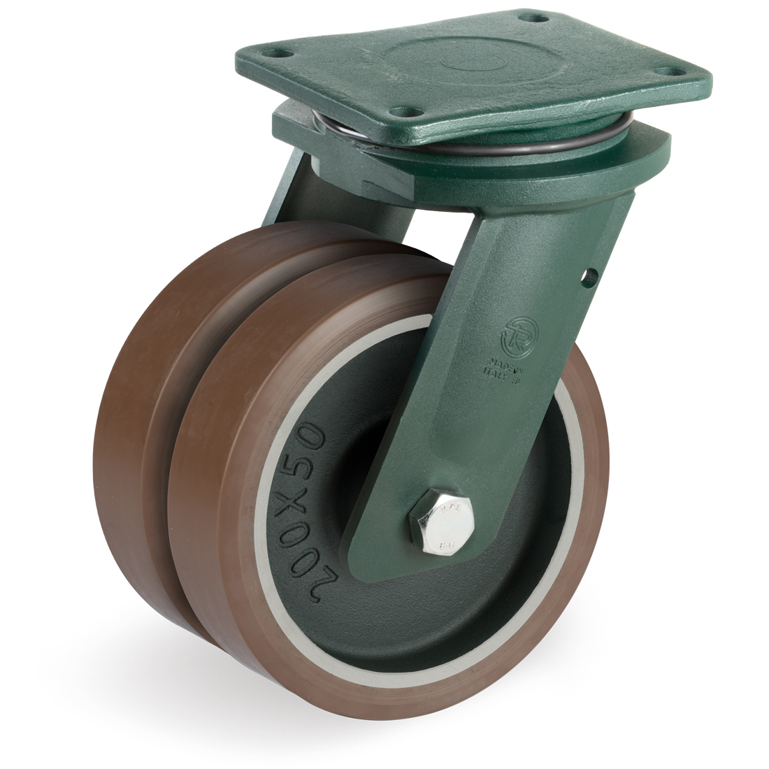 TR-PowerHigh polyurethane wheels are designed and developed for best performance in very heavy-duty applications. The characteristics of this polyurethane compound allow intensive uses, with high loads, even at speeds above 10 km/h and for frequent handling.